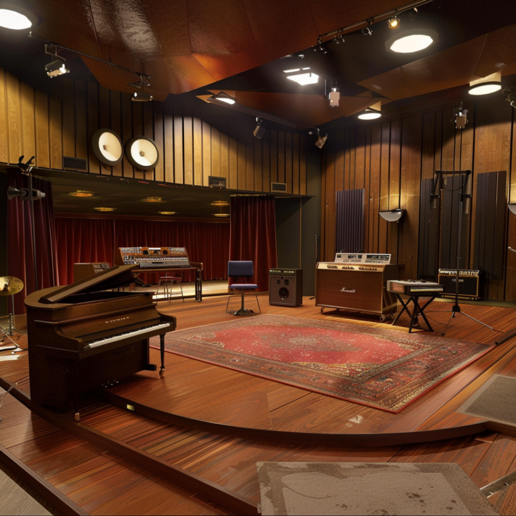 – Wood: Wood can absorb certain frequencies while diffusing others, offering a natural and warm acoustic environment. It is used for wall panels, floors, and acoustic decorative elements, adding natural warmth and richness to recordings. Compared to concrete, it allows for more balanced reflection management.